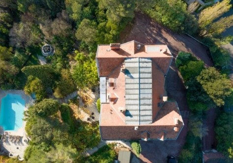 The gardens, laid out around the historic Pfarrer Hill in 1890, feature a beautiful and mature tree canopy in a traditional Provençal style, with several distinct garden areas surrounding the house.